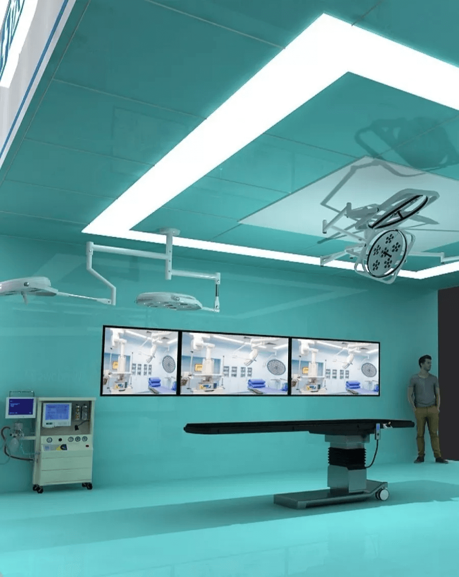 在這里,富含科技感的美學設計,一個“炫”字難以形容,通過情景體驗的模式,現場還原了新型一體化手術室的全部影像所需。
